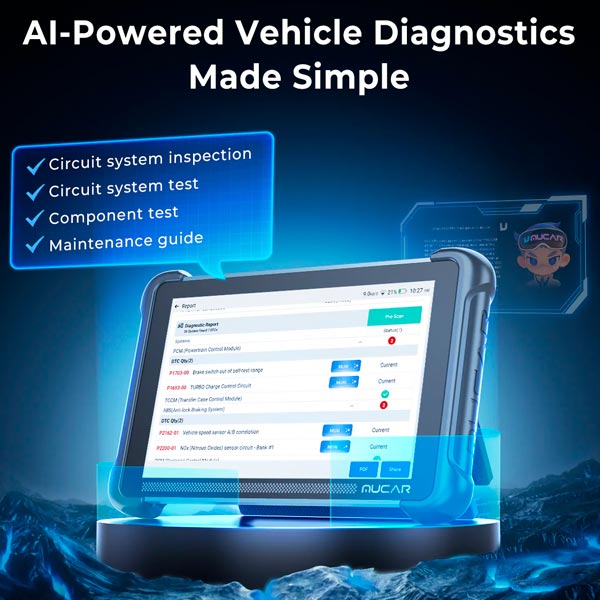 La IA del escáner Mucar 892BT, llamada MUAI esta basada en DeepSeek y funciona como un asistente de diagnóstico. Luego de realizar el escaneo, el equipo envía los DTC y datos del vehículo a una base de datos de conocimiento en la nube. La inteligencia artificial devuelve una explicación de los códigos DTC, causas probables, qué pruebas hacer y posibles soluciones, que se muestran como "AI Diagnostic Report".