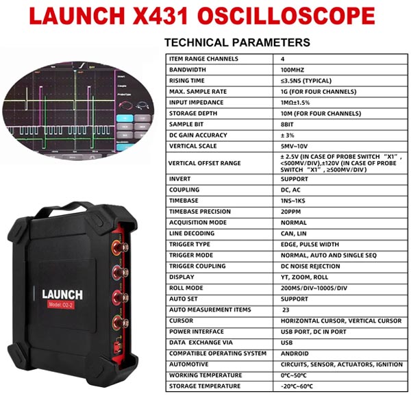 Características del Osciloscopio Automotriz Launch X431 Scopebox 02-2
